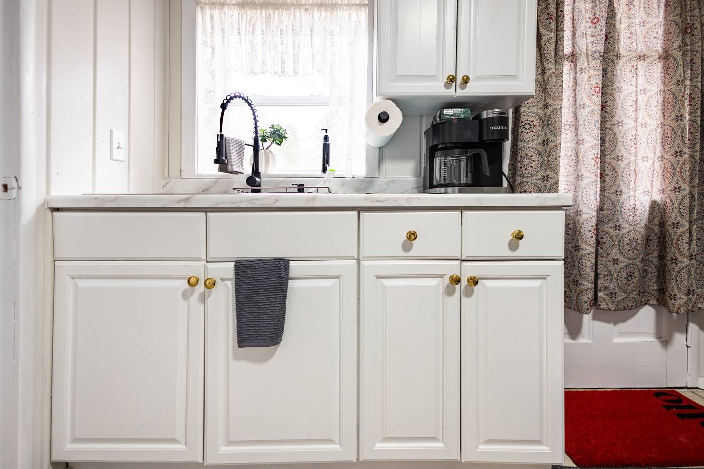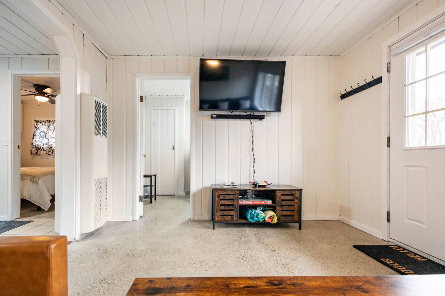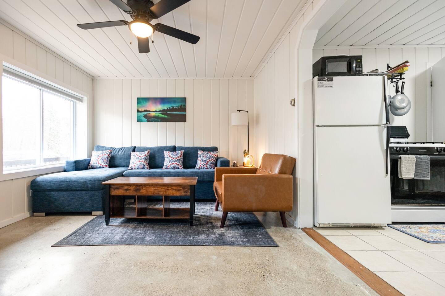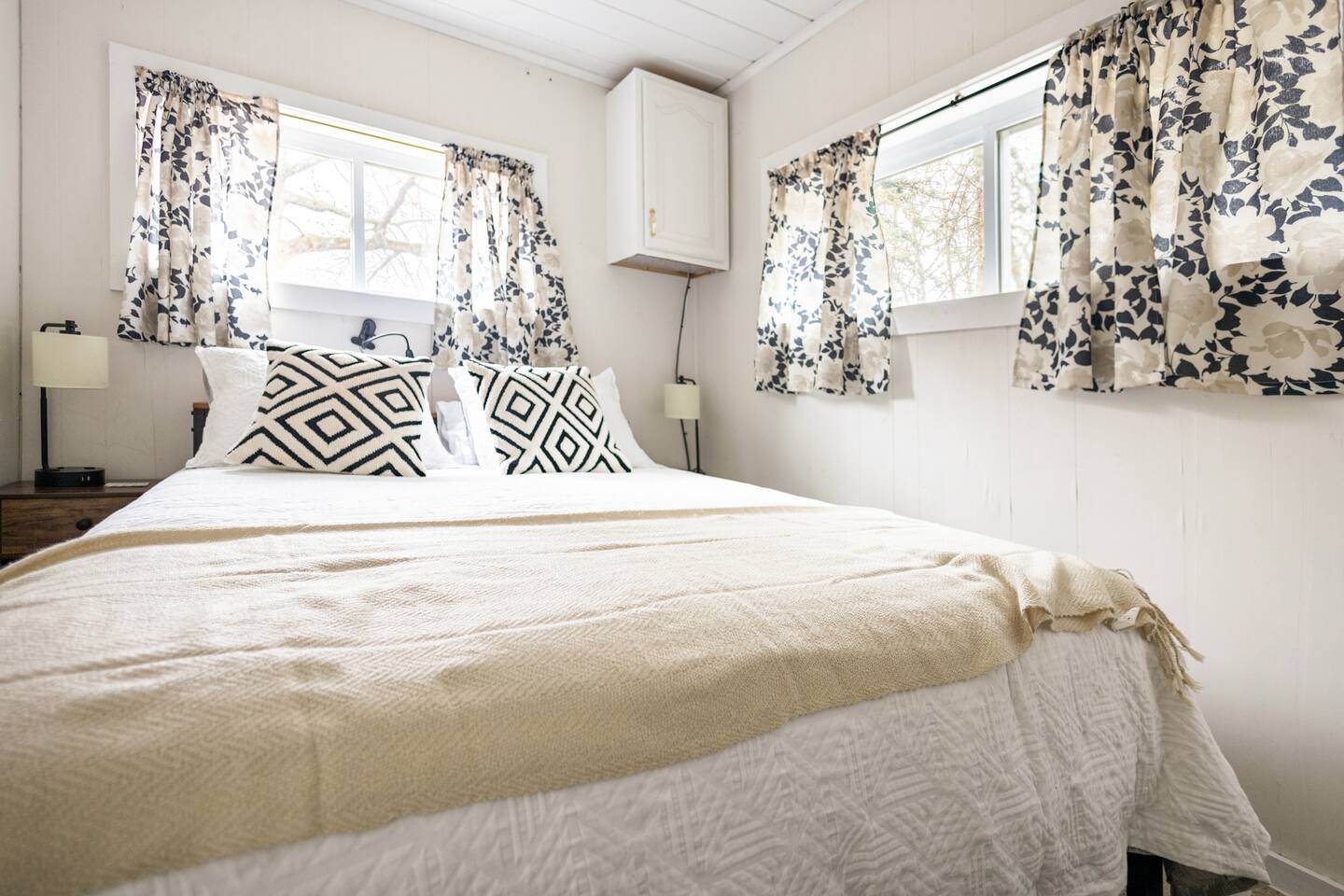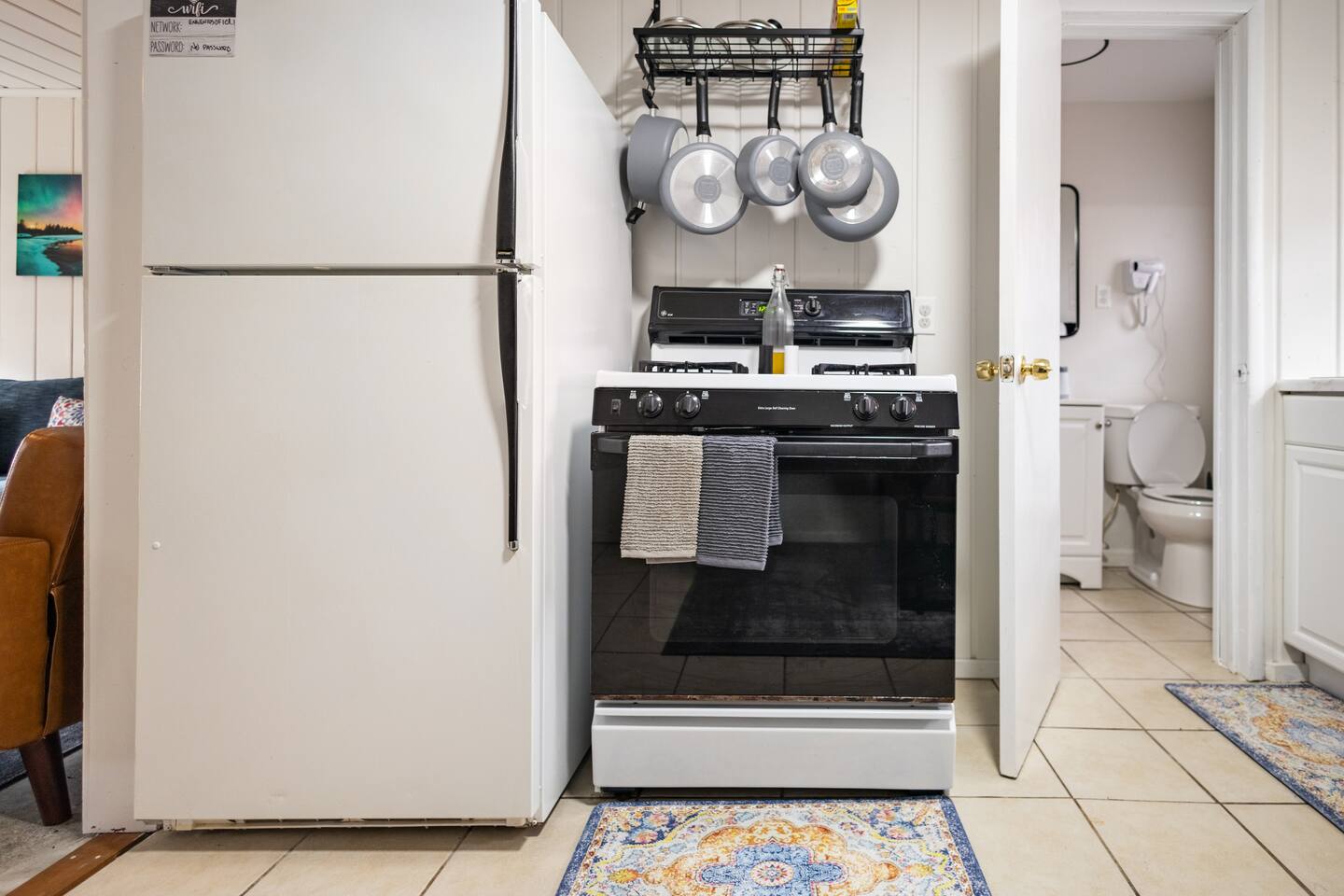 As a remodeled Motel, the space is very cozy. Queen beds were not common in the 50's but we put a new comfy one into the main bedroom. We have a bunk bed that has a Full sized mattress on the bottom and a twin on top in room two. Our ARTICLE brand couch bed folds out for that extra guest or family member. The Vintage has a full kitchen for you to cook in with signature meat's from Walt's Meats next door or warm up something quick before you head out to the beach!